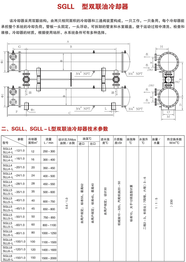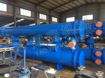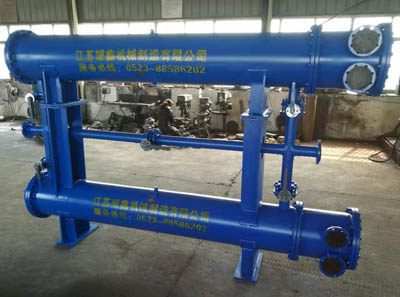 該冷卻器采用雙聯(lián)結(jié)構(gòu),由兩只相同面積的冷油器和三通閥裝置構(gòu)成,一只工作,一只備用,每個冷卻器能承擔(dān)整個系統(tǒng)的冷卻負(fù)荷,管板一頭固定,一頭浮動、可拆卸的管束和水室箱蓋,便于運行過程中清洗、檢查和維修。冷卻器的材質(zhì),根據(jù)使用場所、水系統(tǒng)條件可有多種選擇。