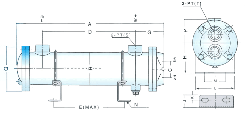 形式編號(hào) A C D E G H J K L M N P Q R S T 較大流量L/min 散熱面積m2